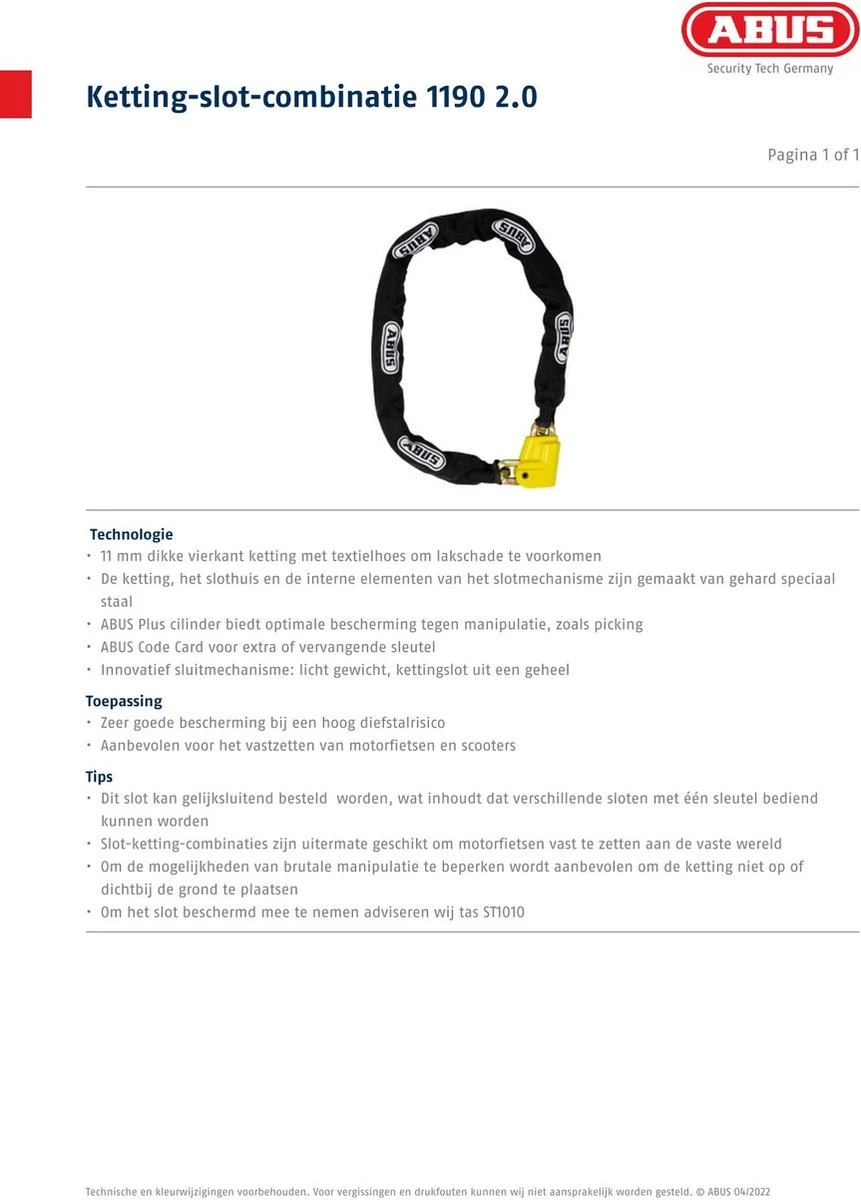 Wees de eerste om “ABUS Ionus 1190/11 Kettingslot ART4 – 120 Cm” te beoordelen Reactie annuleren