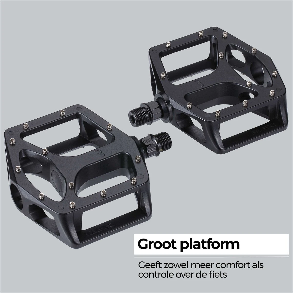 Met de BBB Cycling MountainHigh Mountainbike Pedalen BPD-32 ben je klaar voor de meest extreme omstandigheden die je je maar kan bedenken. De heavy duty constructie is voorbereid op alles. De grip pins zijn vervangbaar zodat je altijd de maximale grip behoud tijdens iedere rit. De CrMo as is super duurzaam en sterk. Deze fietspedalen zijn gemaakt voor het ruige terrein, en jij?