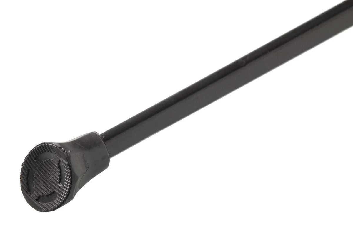 De zwarte fietsstandaard is geschikt voor fietsen van 24, 26 en 28 inch en heeft een rubber voet. Materiaal: aluminium.