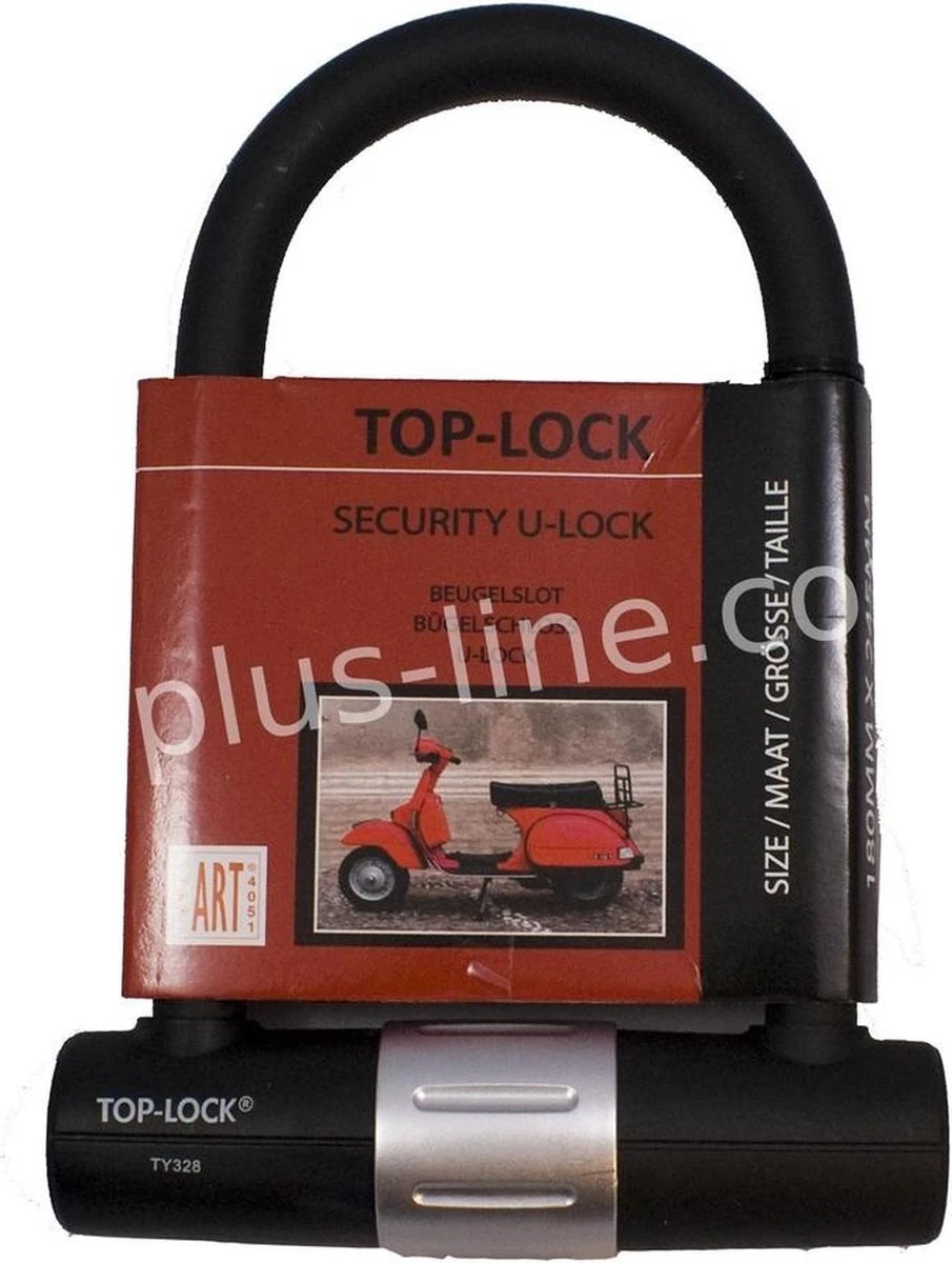 Dit ART 4 beugelslot van Top-Lock is een massief slot met 16mm dikke beugel. Dit is dan ook de reden dat het na diverse testen het ART 4 sterren label heeft gekregen. Daarom is het slot zo geliefd onder motor- en scooterrijders.