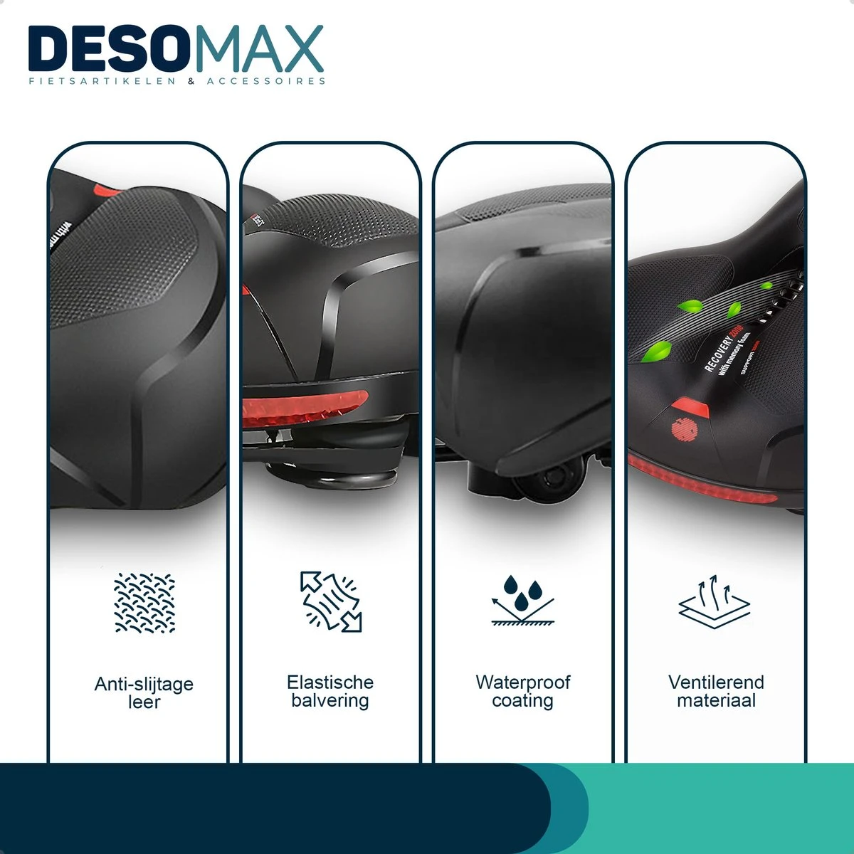Deso heeft zich gericht op een ergonomisch, comfortabel fietszadel voor alle fietsers. Dat betekent dat het zadel unisex is en dus gebruikt kan worden door mannen en vrouwen. Met de meegeleverde montage strop kan het zadel gemakkelijk gemonteerd worden op elke fiets en dankzij de meegeleverde waterdichte regenhoes hoef jij je nooit meer druk te maken over een nat zadel!