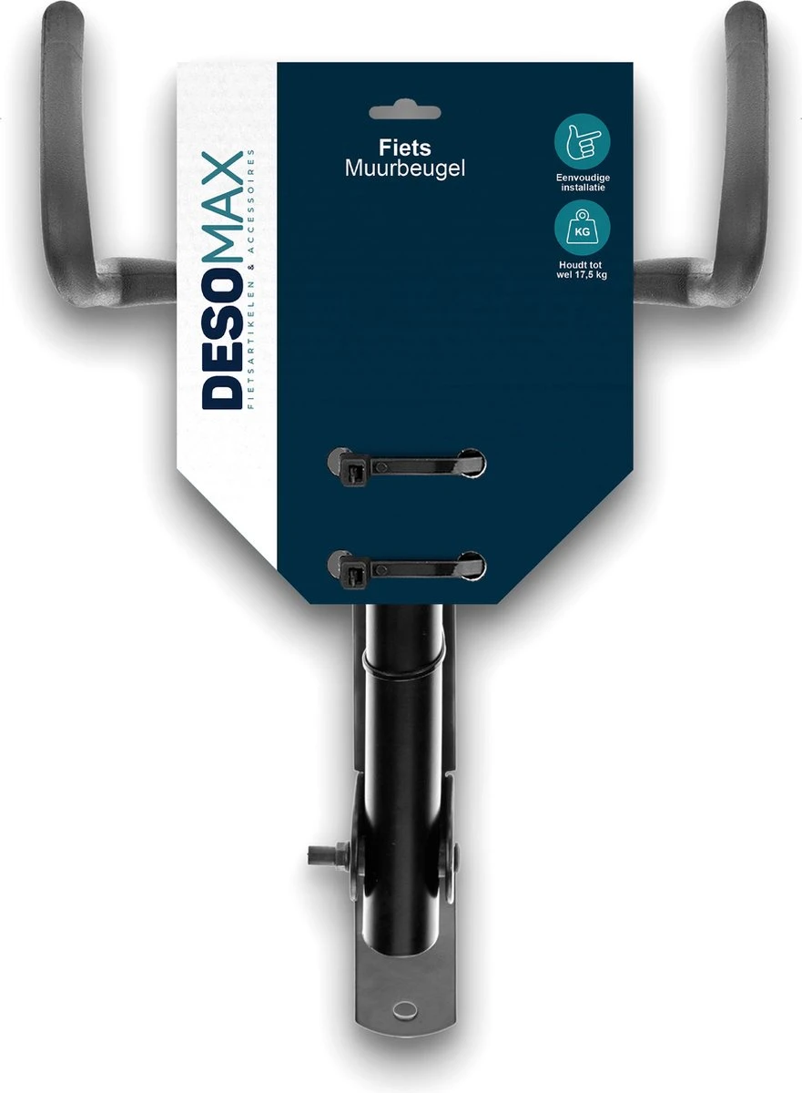 De DesoMax muurbeugel is gemaakt van zeer sterk staal waardoor deze fietsen tot wel 17.5 kg kan houden door de 2 punts muurbevestiging, Wanneer je de beugel niet gebruikt klap je hem rechtop op zodat deze helemaal niet in de weg zit.
