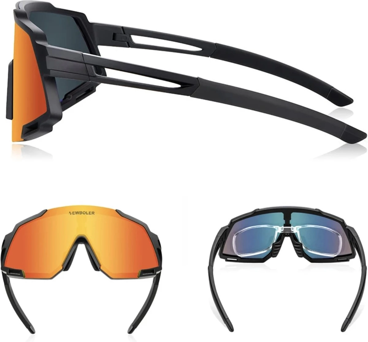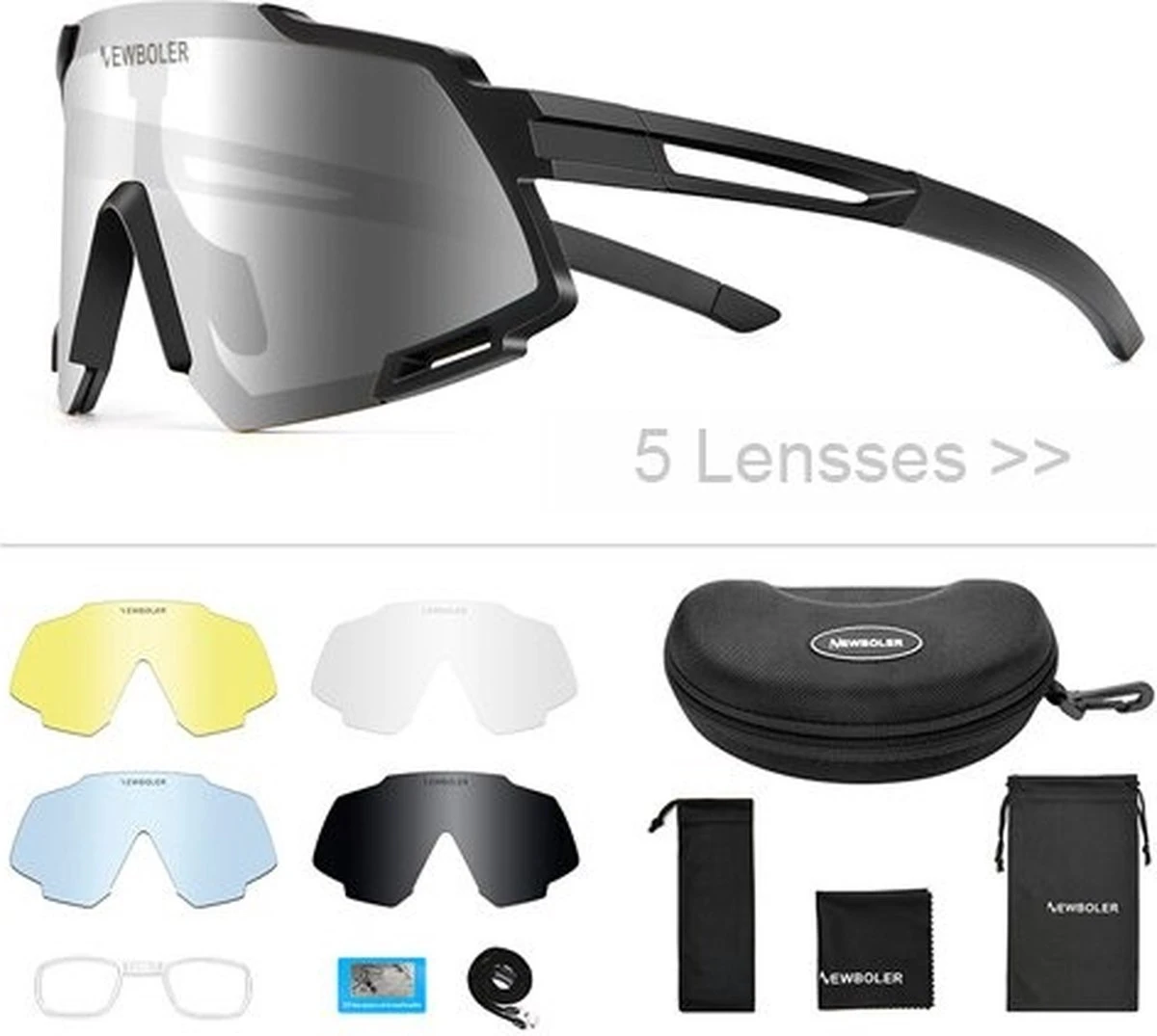 De Newboler sportbril is uiterst geschikt om te dragen tijdens racen of mountainbiken, en biedt volledige bescherming voor uw ogen. In welke houding ook men zit op de fiets, men kijkt niet naar het frame van de bril door de grote lenzen. Verder blijft de bril ook goed zitten en is het ontwerp licht van gewicht (inclusief lenzen 28 gram). De zachte rubberen neusbrug en flexibele brilpoten vergroten het draagcomfort. De set bestaat naast het montuur uit 5 verschillende lenzen;