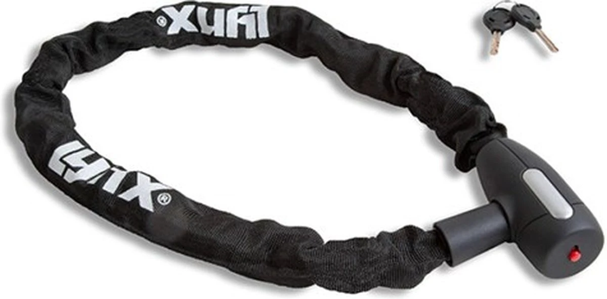 Het Lynx cityline L kettingslot heeft een 110 cm lange hoogwaardig geharde stalen ketting met 8 mm dikke vierkante schakels. Dit zwarte veiligheidsslot is weerbestendig en voorzien van auto-click (slot sluit zonder sleutel) en wordt standaard geleverd met 3 sleutels. Daarnaast voorkomt de nylon hoes beschadigingen aan de fiets of bromfiets.