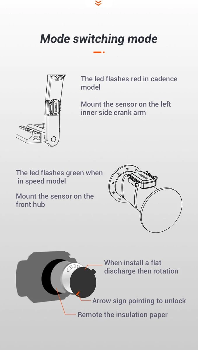 Wilt u schakelen tussen de cadens- en snelheidsensor? Dit doet u door middel van het verwijderen van de batterij en deze na 5 seconden terug te plaatsen in de sensor.