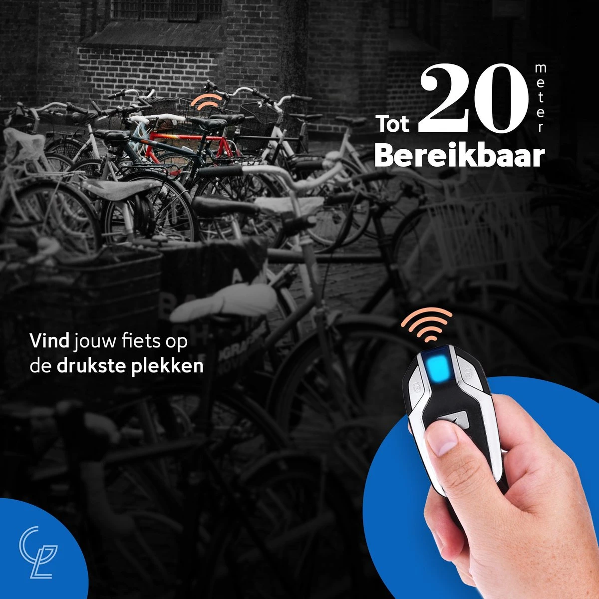 Met de afstandsbediening kan je het alarm van een afstand geluid laten maken zodat je direct weet waar je jouw fiets hebt achtergelaten. Vooral in een drukke stad is dit handig omdat je fiets gemakkelijk zoek raakt in de overvolle fietsenstallingen.