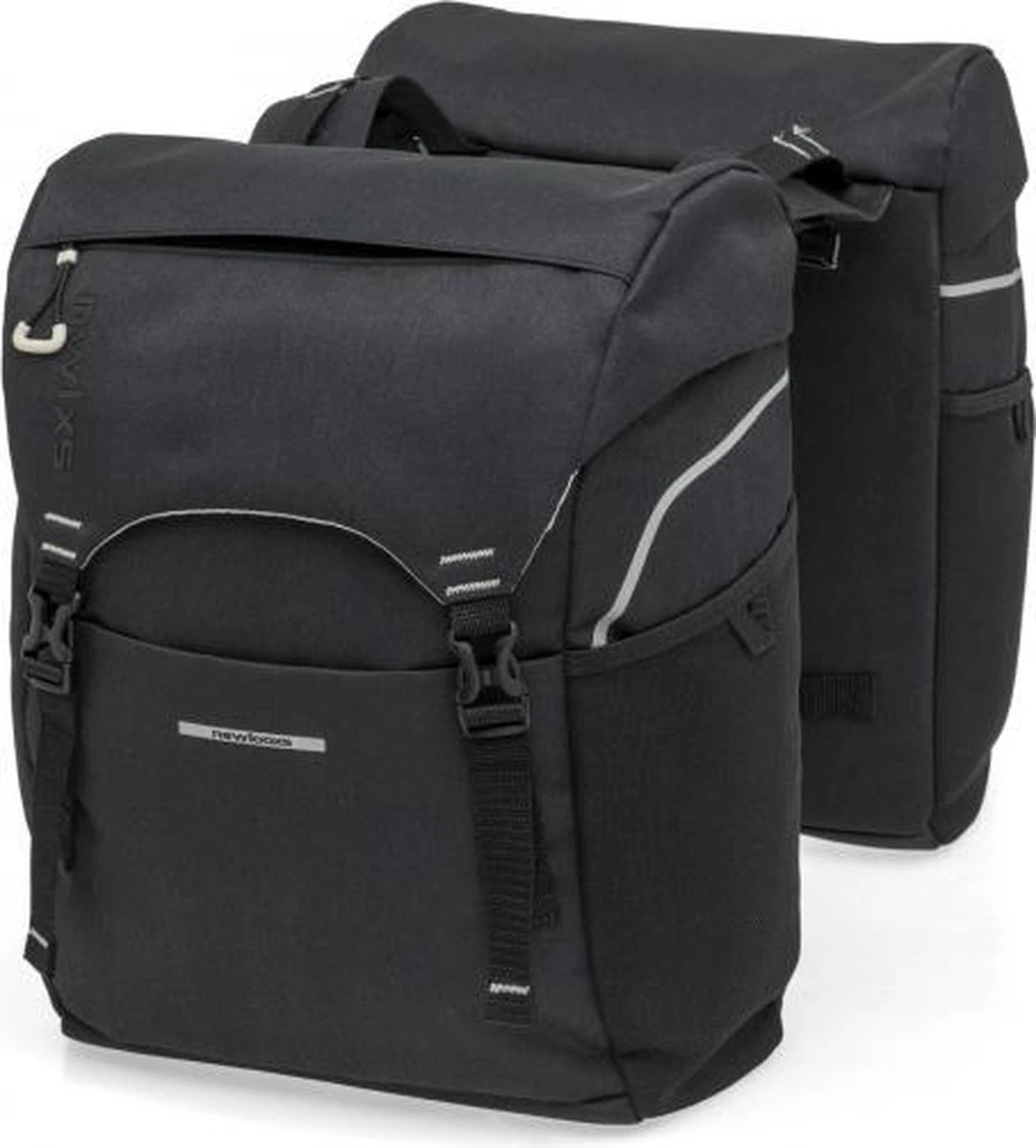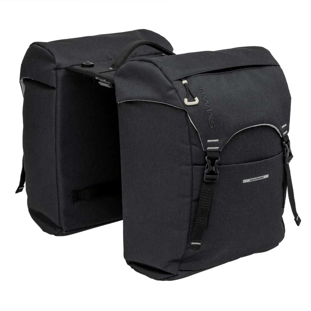 De Sports dubbele fietstas is verkrijgbaar in zwart met grijze accenten.