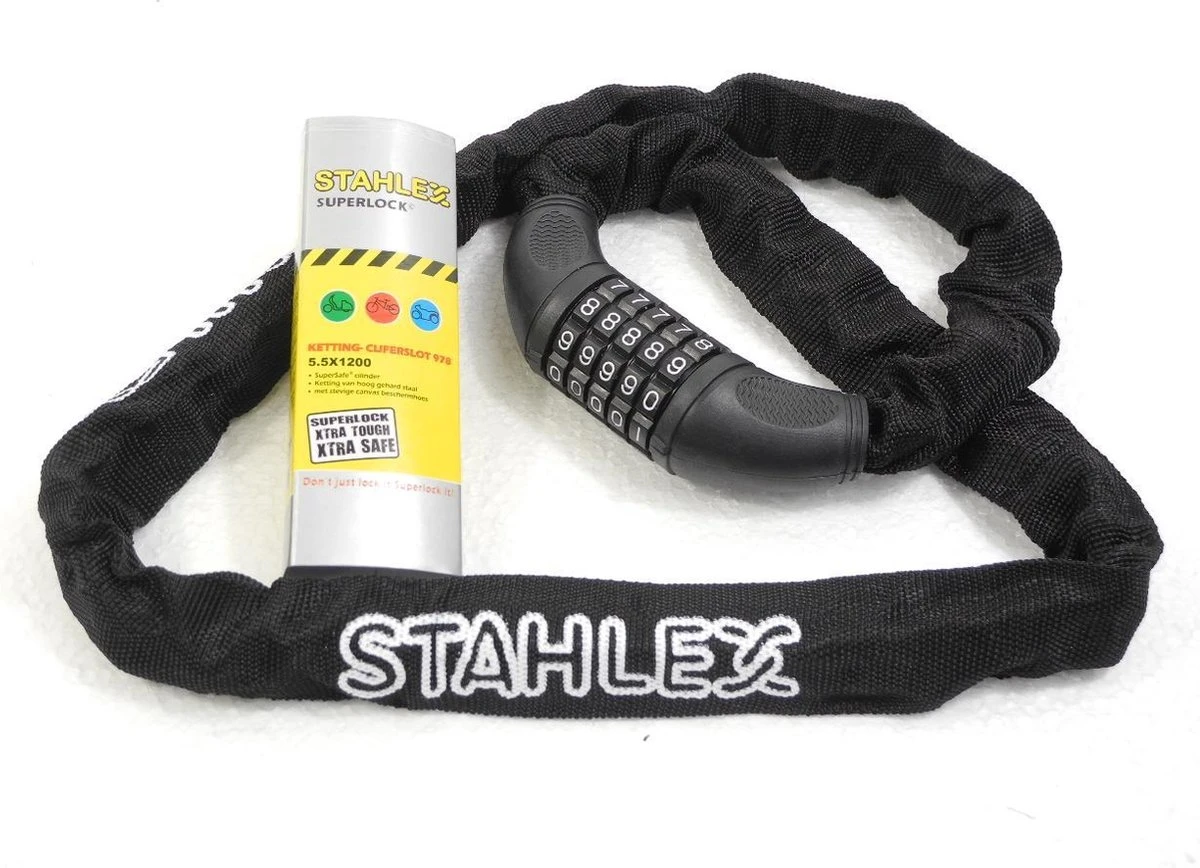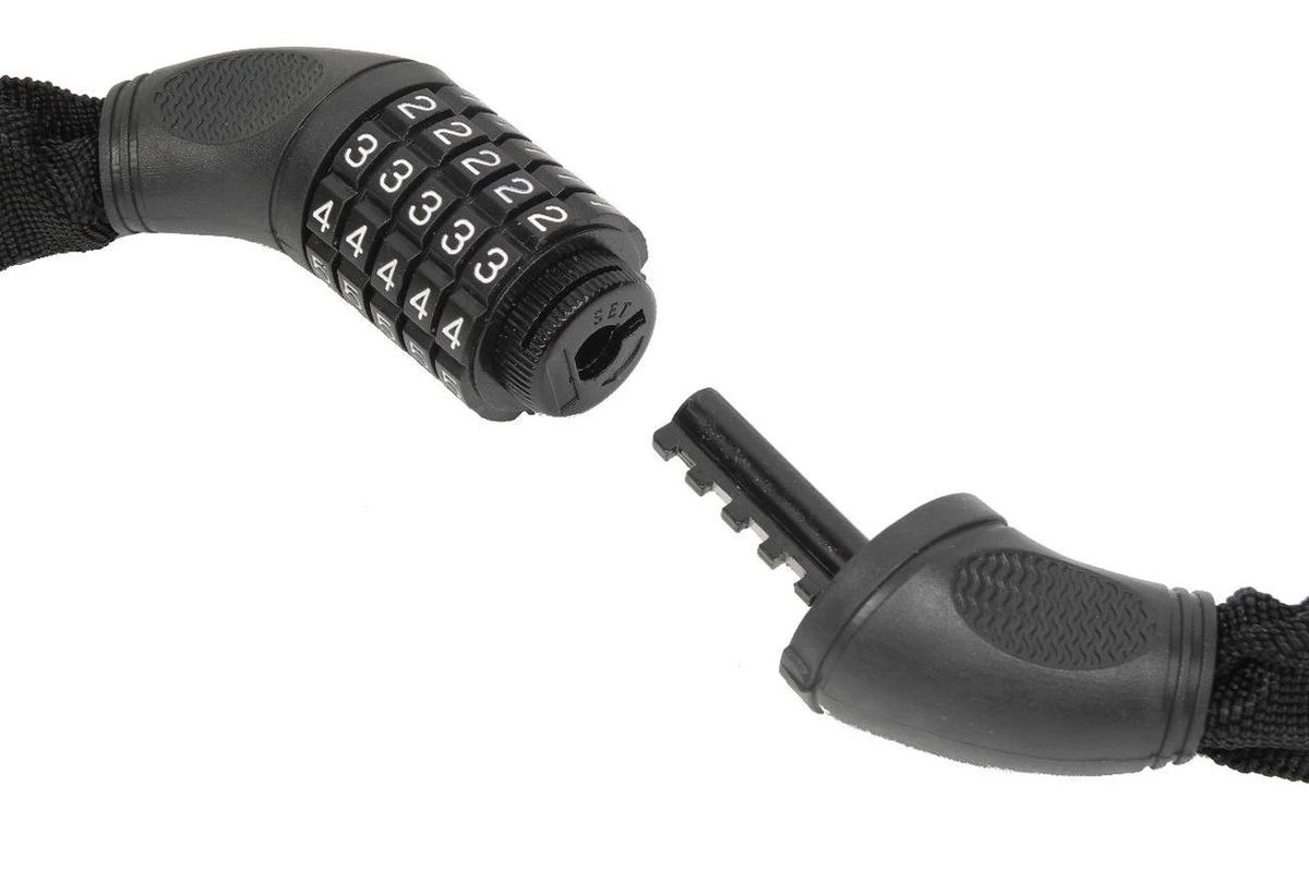 Dit ketting cijferslot is ideaal om uw tweewieler veilig en gemakkelijk op slot te zetten. Met behulp van de hoog gehard stalen ketting wordt het voor dieven veelste moeilijk om door de ketting heen te komen, dat maakt uw fiets natuurlijk een stuk veiliger. Tevens zit er een stevige canvas beschermhoes om de ketting heen, fietsvriendelijk! Deze ketting cijferslot is van goede kwaliteit en ook bruikbaar als poort-kettingslot of aanhangerslot. Het slot beschikt over de veiligheidscategorie B.
