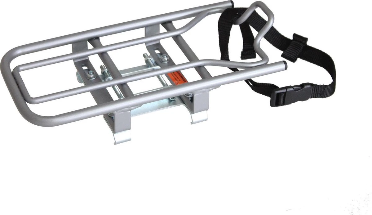 p Dit is een opzet drager voor op een elektrische fiets. Met deze drager bouwt u de bagagedrager van uw elektrische fiets om tot een bagagedrager waar een kinderzitje of fietstas op kan. De drager is gemaakt van stevig materiaal en heeft een stevige bevestiging. De drager heeft een extra veiligheids riem ter bevestiging aan de zadelpen. De Steco opzetdrager wordt geleverd in standaard grijs-zilver. /p p bKenmerken:/b /p merk: Steco model: Universele drager
