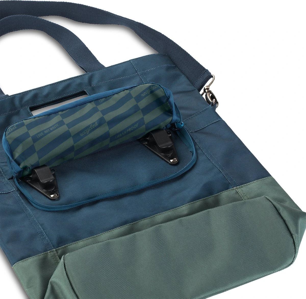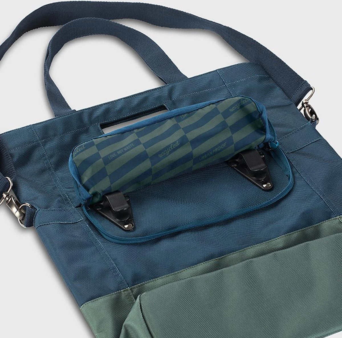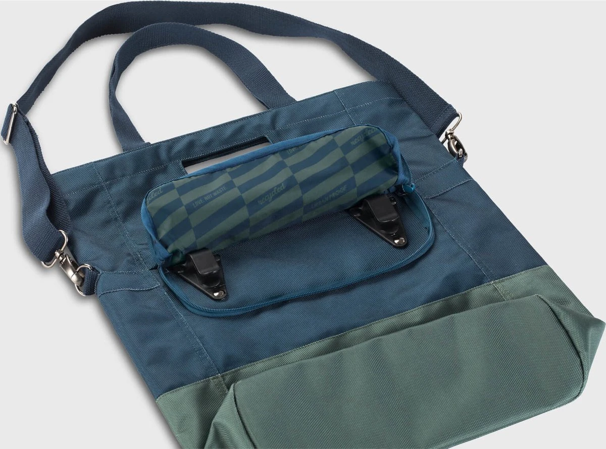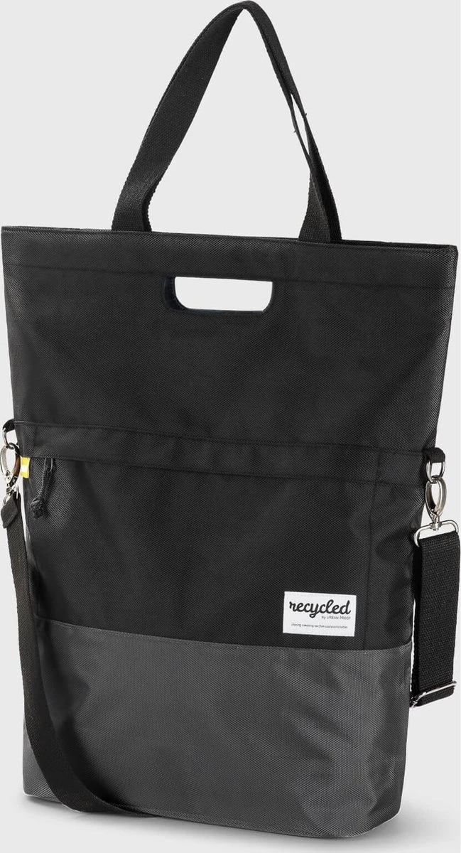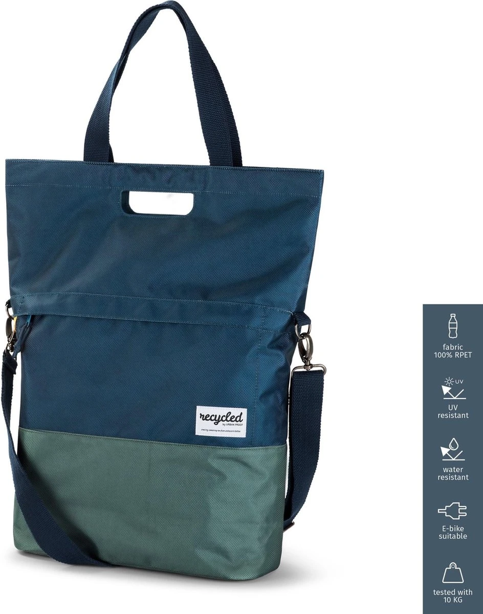 Urban Proof 20L shopper fietstas is zo ontworpen dat hij zeer gebruiksvriendelijk is maar er daarnaast ook nog erg mooi uitziet voor dagelijks gebruik. Het is een duurzame tas gemaakt van gerecycled PET materiaal (RPET). De ruime fietstas heeft een inhoud van 20 liter en kan eenvoudig afgesloten worden met de magnetische sluiting. Met de bevestigingshaken die aan de achterkant van de tas zitten, is de shopper tas gemakkelijk achterop de fiets te bevestigen. Deze haken zijn weggewerkt met een ritssluiting. De Urban Proof fietstas heeft een handvat, een korte band en een schouderband zodat je de tas op elke wenselijke manier kan dragen. Aan de voorkant en aan de binnenkant zit een los vak om eenvoudig je sleutels, portemonnee en telefoon op te bergen.