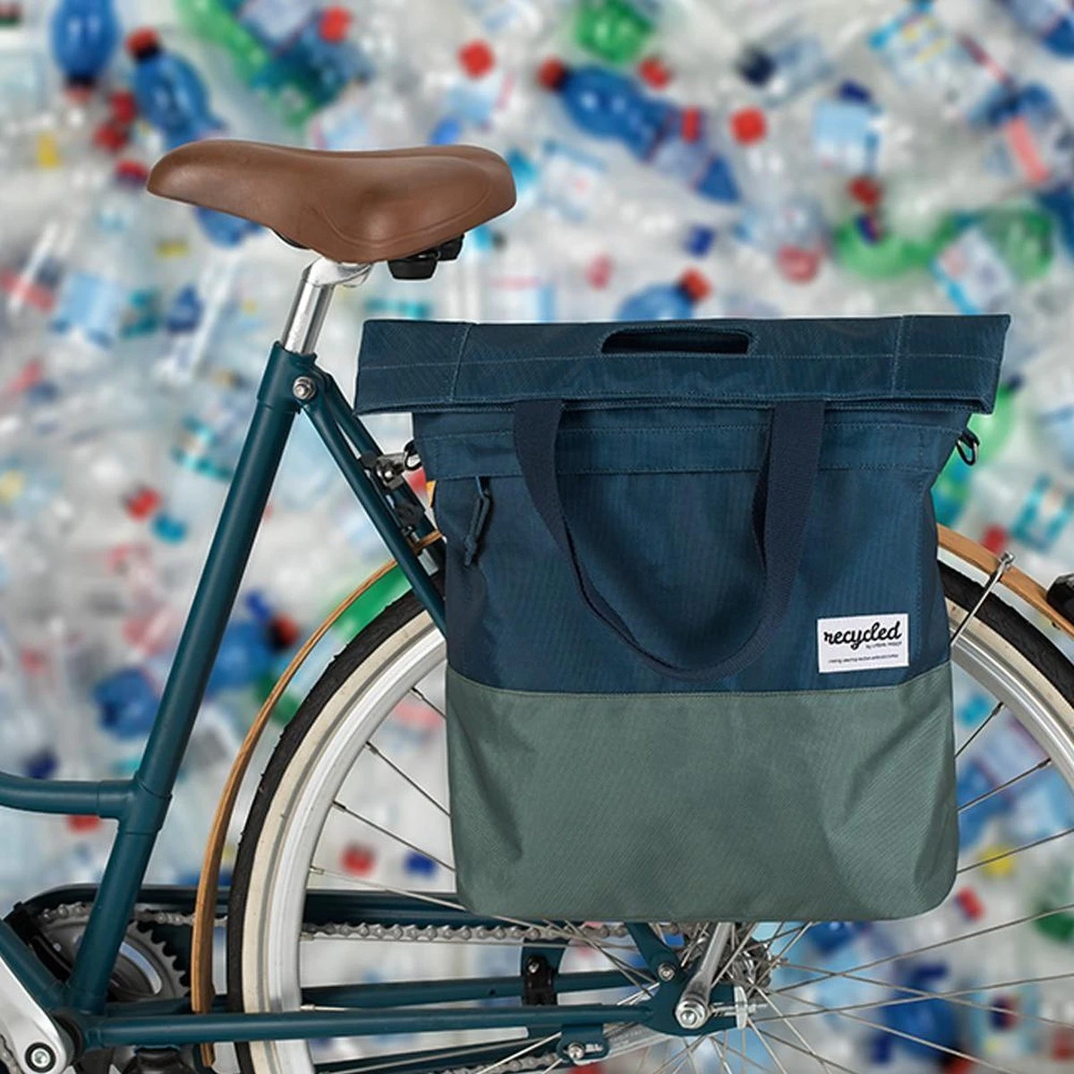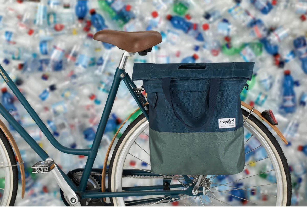 Productspecificaties: Materiaal: Gerecycled PET Afmetingen: 42 x 13 x 50 Inhoud: 20 liter Kleur: blauw/groen