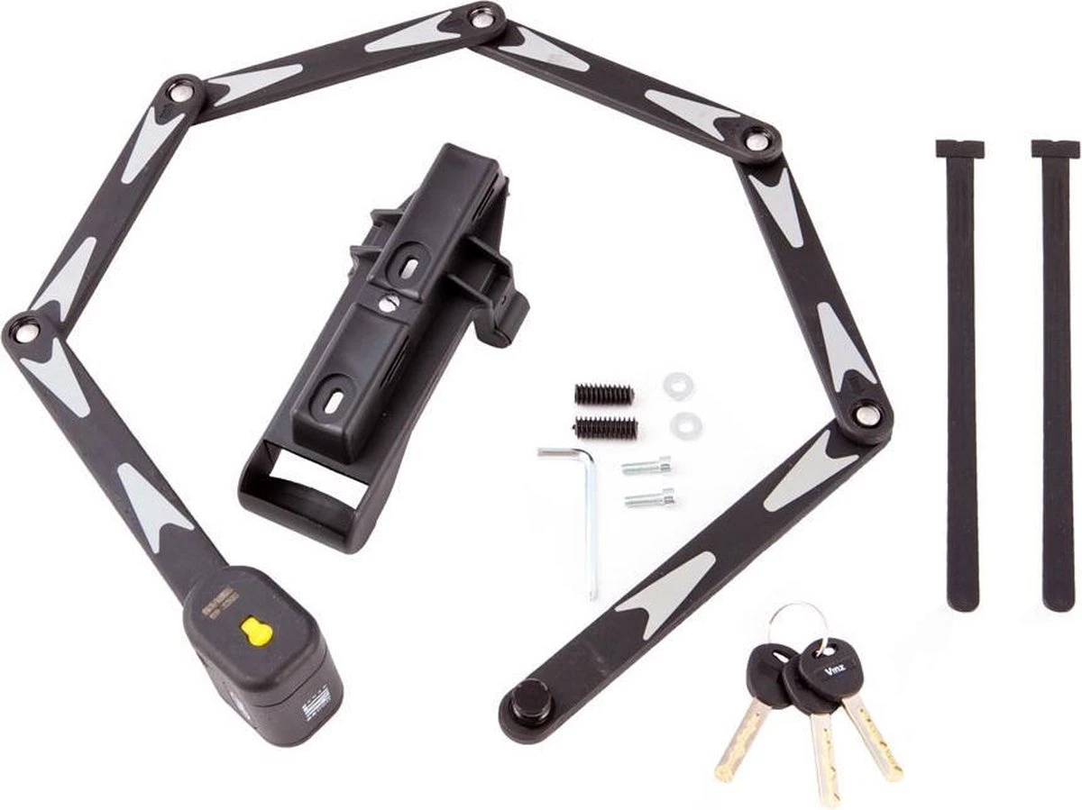 | Verpakkingsinhoud | VINZ Lhotse Vouwslot ART 2 – 95cm Fietsslot / Mountainbike slot / Racefiets slot / BMX slot met bevestiging |